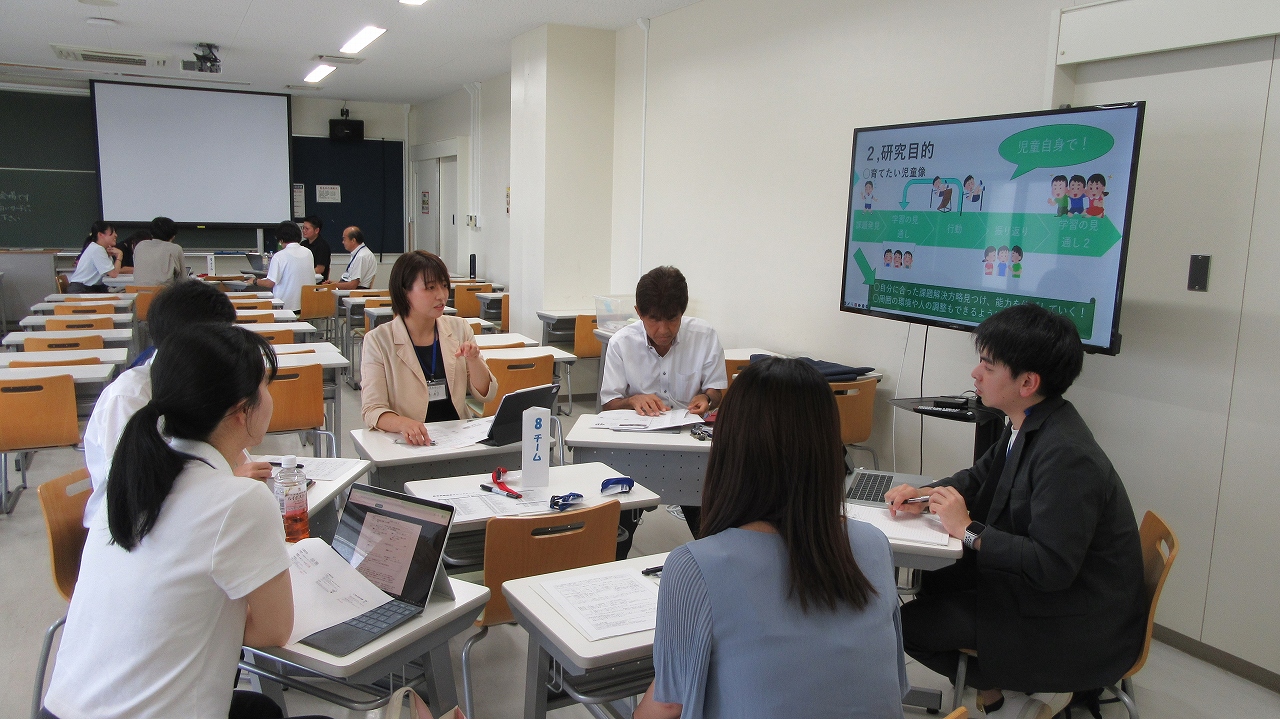 校種や職種などの垣根を越えた少人数のグループでの交流を行います。参加者が日常の実践で得た成果や抱える問題等について意見を交換し、多様な視点から問題解決のヒントを得て、新たな気づきや関心を高めることで、未来を拓く“生きる力”を育む創造的な教育実践の展開へとつなげます。